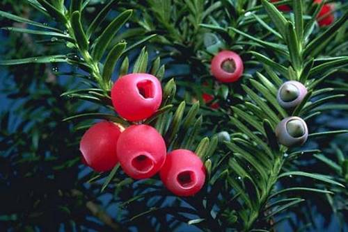 Buis du sapin ou encore sapin trainard ressemble littéralement à des branches de sapin sortant du sol très commun dans la forêt boréale. Fut longtemps récolté car il contient une substance appellée paclitaxel qui est reconnu pour arrêter la division mitotique des cellules cancéreuses. Cette substance est maintenant synthétisé ce qui en rend la récolte beaucoup moin commune (et elle requiert un permis du moin sur les terres publique). Les aiguilles, les rameaux et les graines sont hautement toxique (par contre la chaire du fruit ne l’est pas mais vous ne DEVEZ PAS MANGER LA GRAINE) les symptomes d’une intoxication à l’if comptent des vomissements, une diarrhée, des crampes abdominales, des vertiges, et même des hallucinations…